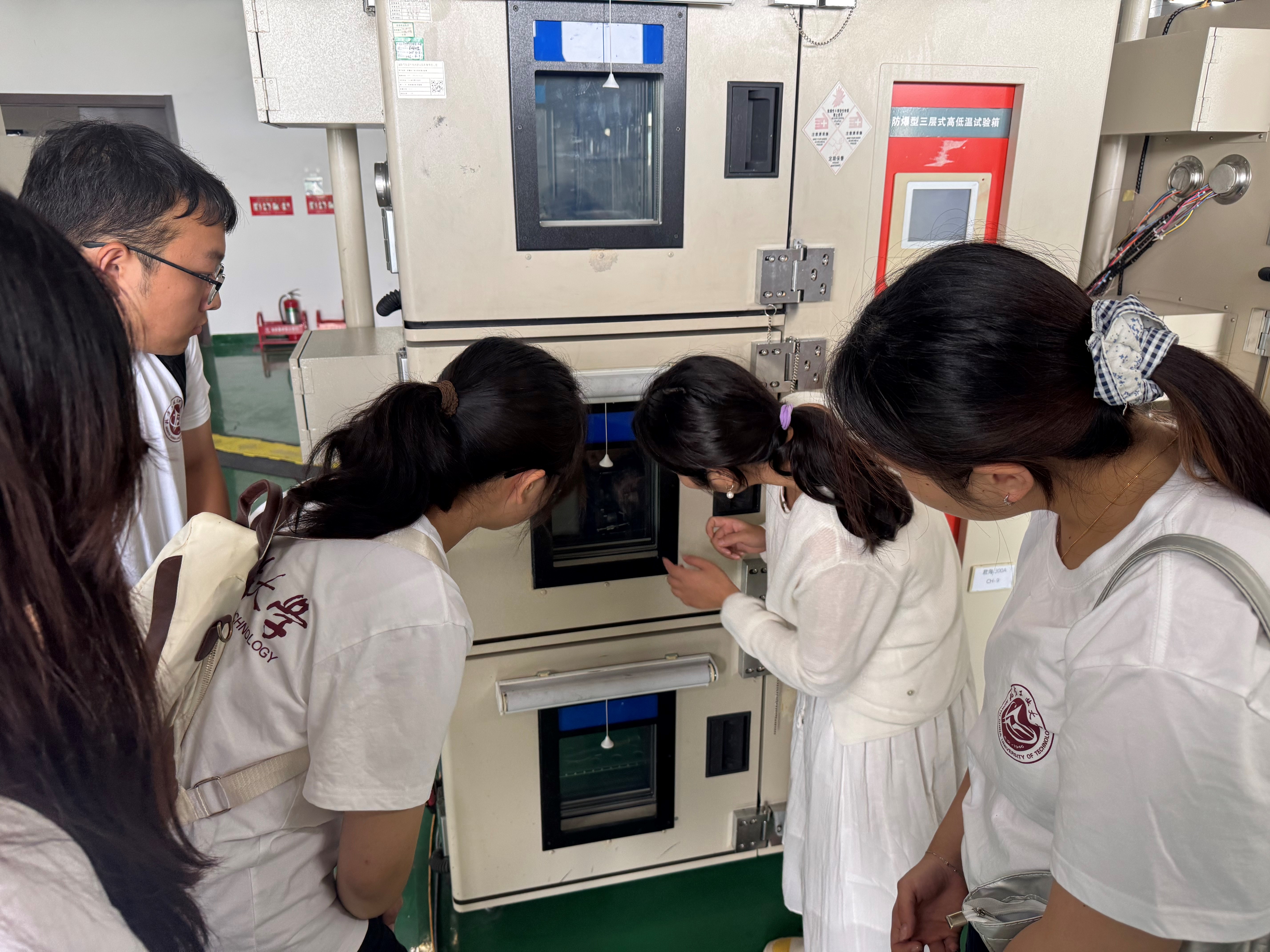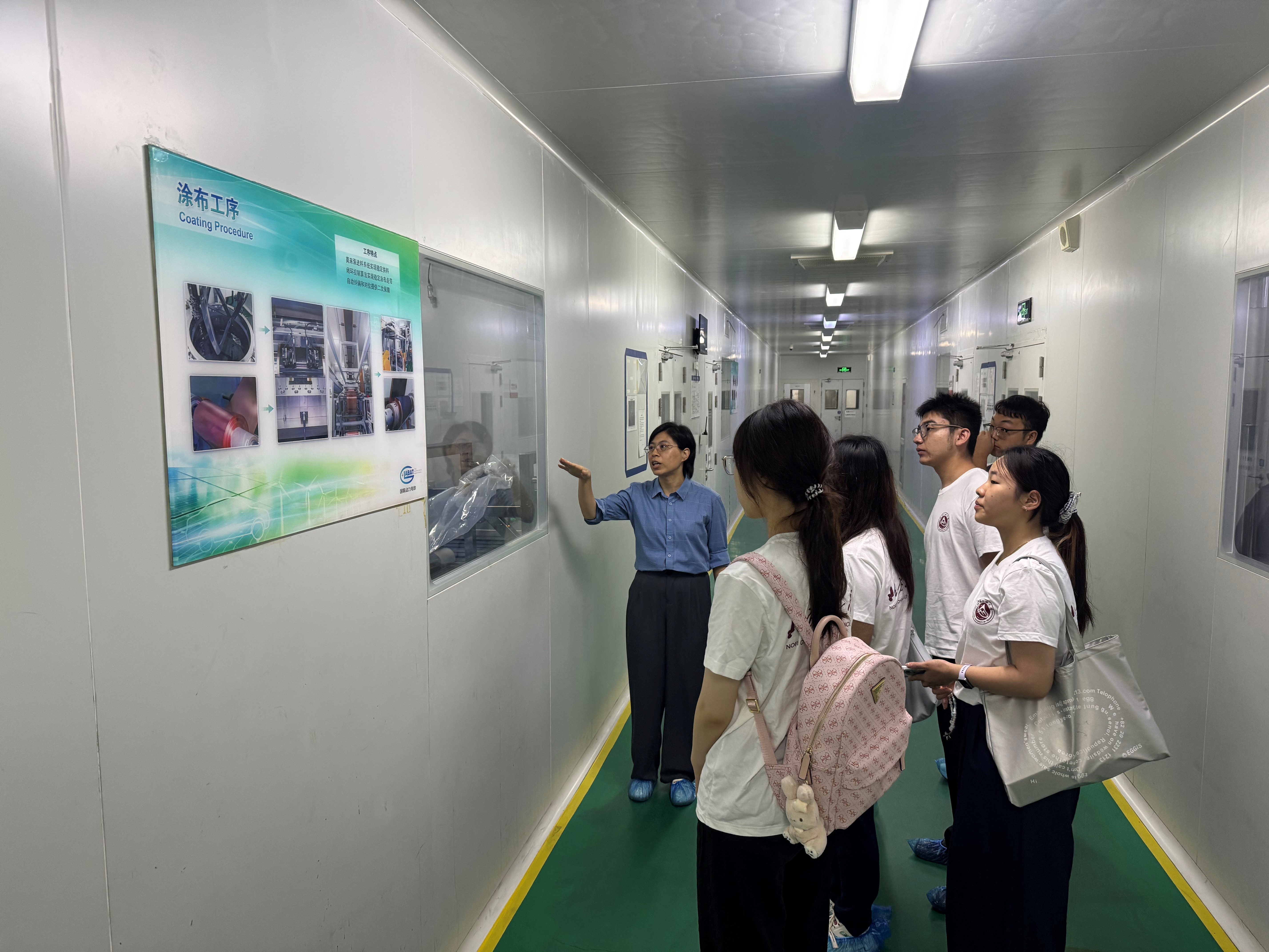 随后,师生在研究院专业技术人员的带领下,实地参观了动力电池生产线、电芯组装车间及电池质检与性能测试实验室。工作人员结合产线实况,详细讲解了从极片制造到电芯组装的完整工艺流程,以及充放电测试、材料成分分析、X射线检测等关键质控环节,使大家对动力电池的制造全过程和质量控制体系有了直观而深入的理解。