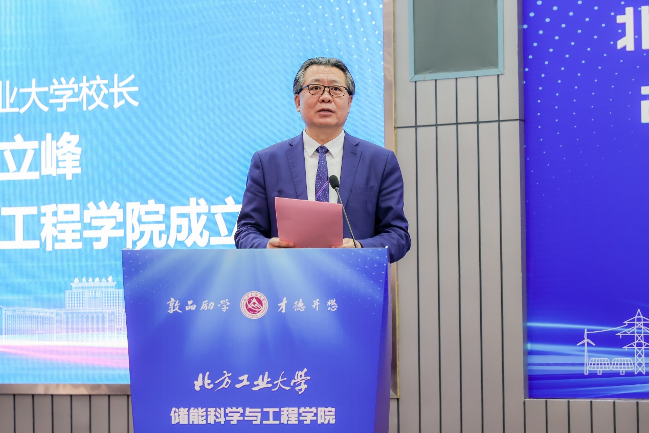 张立峰在成立大会上致辞。他回顾了公司的发展历史,指出自1978年兴办本科以来,公司师生不断适应国家和北京市发展需要,推动学科转型升级,使“老工科”赋予了“新内涵”,开出了“新花朵”。特别是近三年来,公司步入发展 “快车道”,实现了“新人才”“新学科”“新博士点”“新校区”的“四新”发展,师生对公司未来发展充满信心。张立峰强调,成立DB真人旗舰是公司顺应时代发展潮流,响应国家战略需求,培养高素质储能科学与工程人才,推动储能技术进步和产业发展的重大举措。公司将以DB真人旗舰为抓手,整合校内外优质资源,打造一流的储能交叉学科研究平台,推动储能科学与工程领域的学术交流和技术创新,为我国储能产业的发展贡献智慧和力量,为服务首都高质量发展、推动我国能源革命和可持续发展做出应有的贡献。